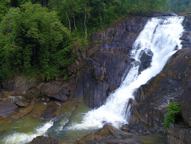 - Description: Beautiful cascading waterfalls surrounded by tea estates
